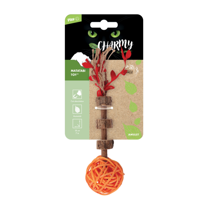 Le jouet Charmy est fabriqué à partir d'ingrédients naturels à base de plantes, connus pour leur effet agréable sur les chats. Sa conception aide à soulager le stress et l'ennui de votre chat, ainsi qu'à stimuler son instinct de jeu. Les bâtonnets de Matatabi peuvent être mâchés en toute sécurité et améliorent la santé dentaire de votre chat en empêchant l'accumulation de plaque.