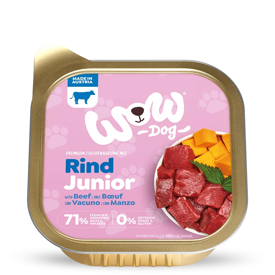 WOW ! Nourriture humide pour chiots – Bœuf, potiron et orties (bol de 150 g) 🐶🌿
