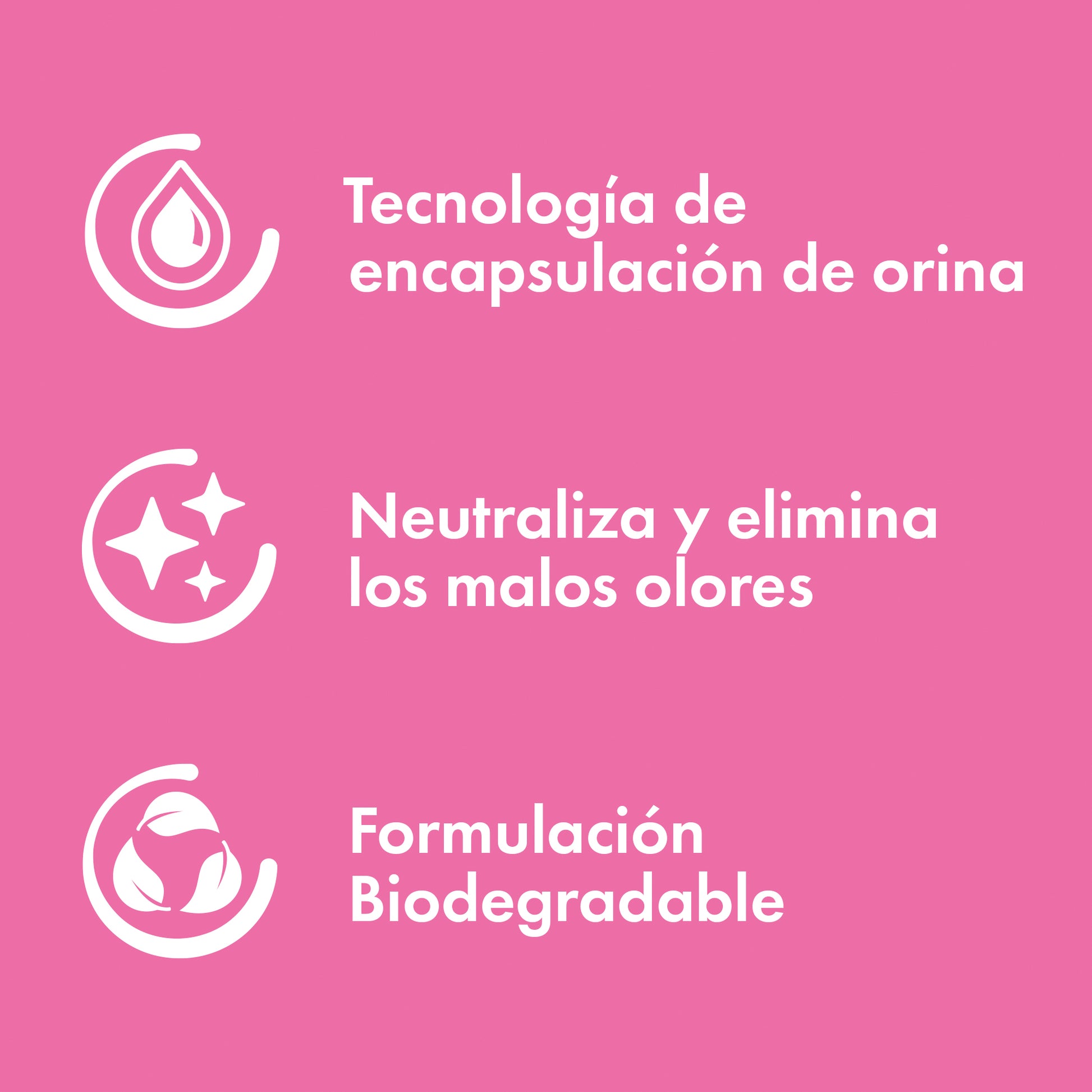Gracias a su innovadora tecnología probiótica, actúa directamente sobre la orina y los desechos para encapsular y neutralizar las moléculas de olor, manteniendo el ambiente fresco y limpio por más tiempo.