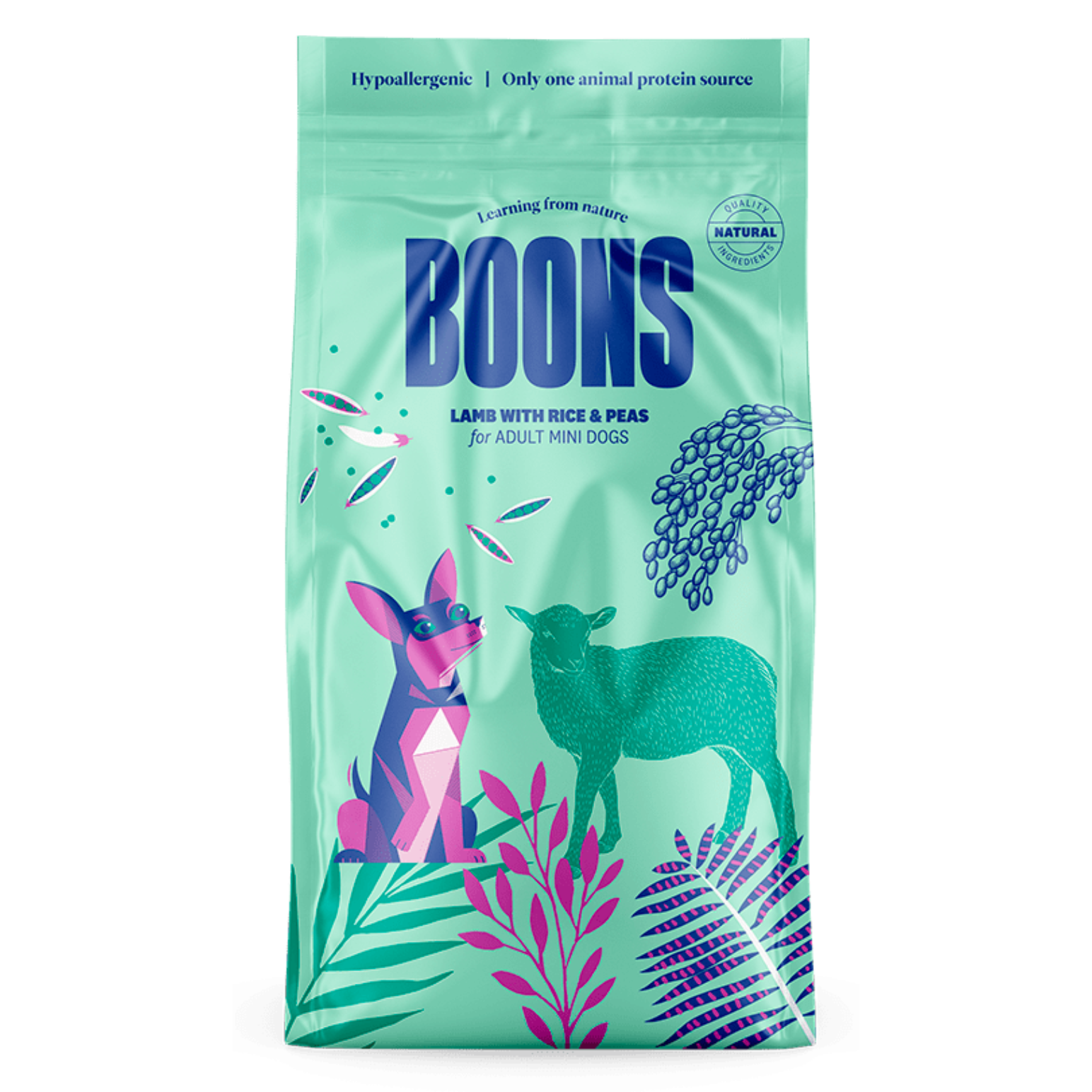 BOONS Adulto Mini Cordero & Arroz & Guisantes es un pienso premium formulado especialmente para cubrir las necesidades nutricionales de los perros adultos de tamaño pequeño, con ingredientes de alta calidad y gran digestibilidad.