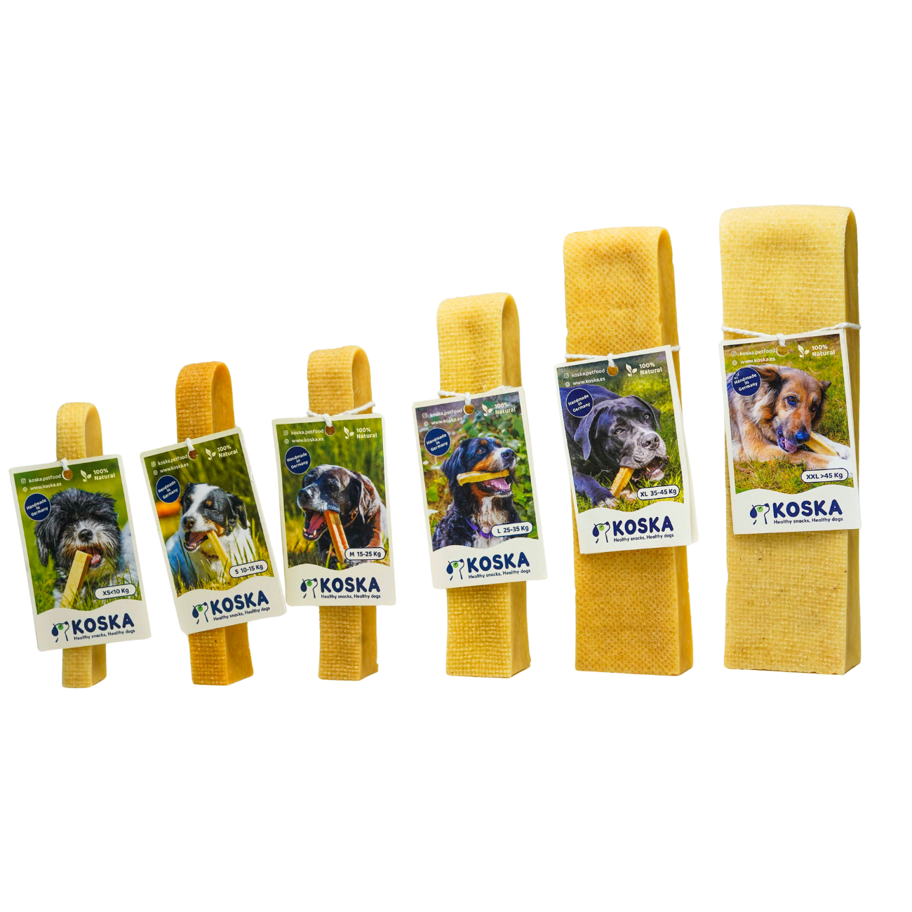 - Koska Bar (XS) – para perros menores de 10 kg (≈ 30–40 g)