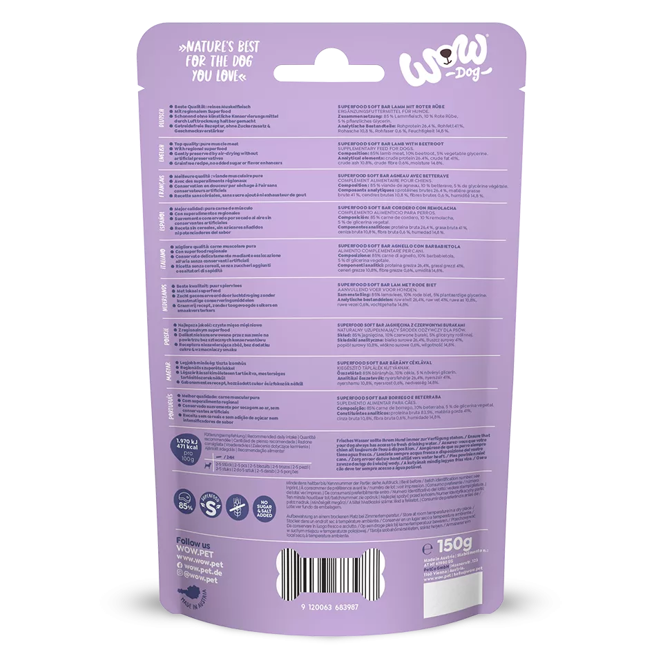 WOW Dog - Superfood Barritas tiernas de Cordero con Remolacha
